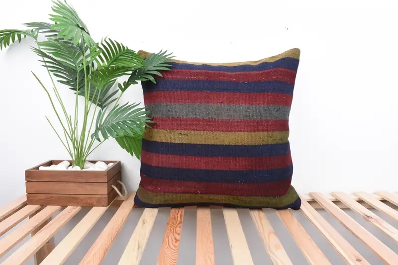 Almohada de rayas marrones y rojas, almohada de lanzamiento bordada hecha a mano
