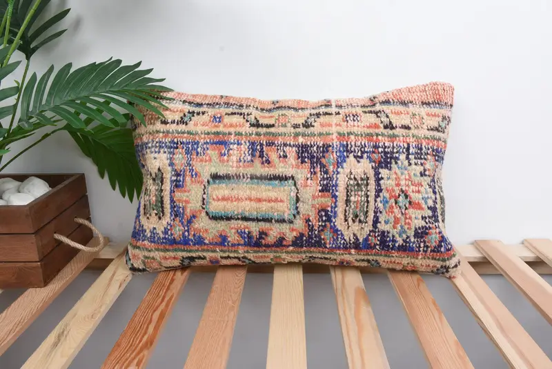 Almohada bordada del suroeste azul, almohada de tiro vintage hecha a mano