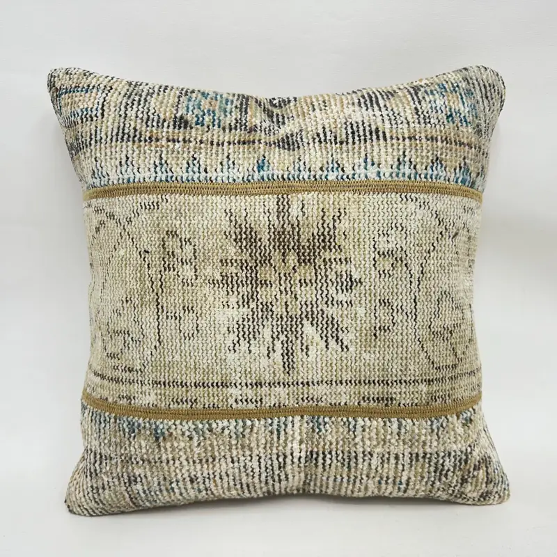 Almohada de tiro de patchwork beige y marrón bordada, almohada de lino vintage