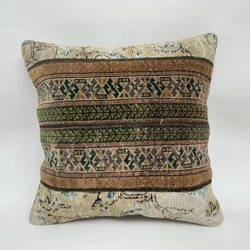 Almohada de patchwork bordada marrón y beige, almohada de lanzamiento hecha a mano