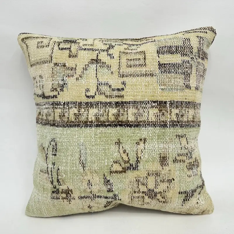 Almohada de tiro floral verde y marrón hecha a mano, almohada de lino 20x20