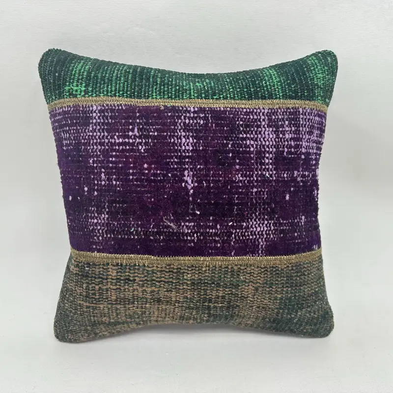 Almohada de lanzamiento de patchwork azul y verde, cojín bordado hecho a mano