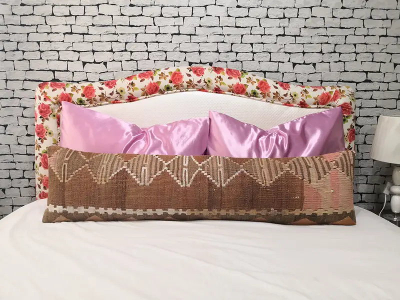 Almohada de lanzamiento geométrica marrón y gris rectangular, almohada Kilim hecha a mano