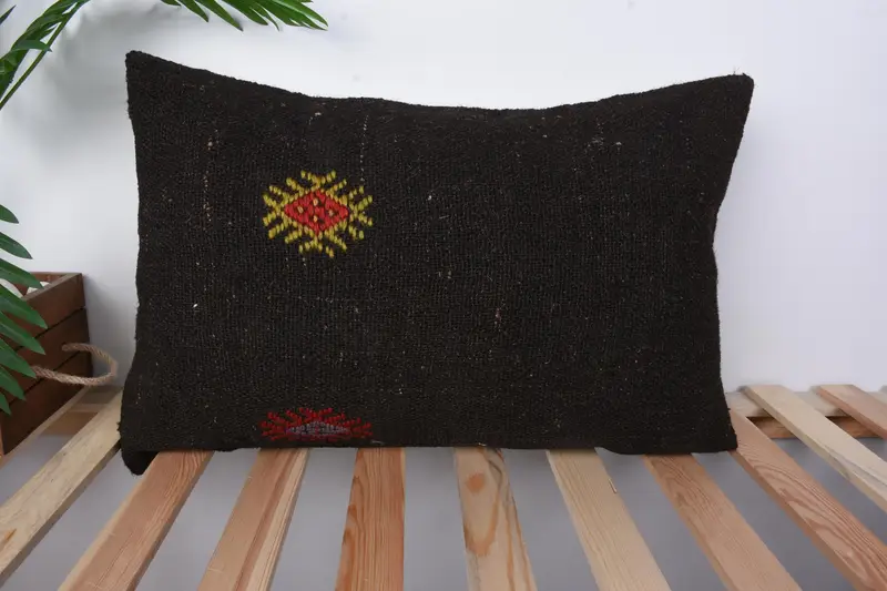 Almohada de tiro floral marrón y verde bordada, almohada rectangular hecha a mano