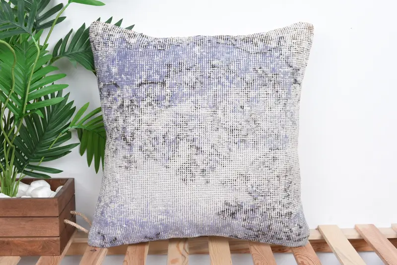 Almohada de tiro de lino púrpura hecha a mano, cojín bordado del suroeste