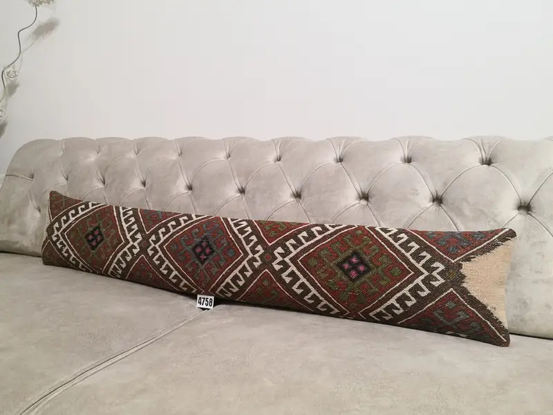 Almohada de lanzamiento de lana bordada hecha a mano, almohada rectangular geométrica vintage