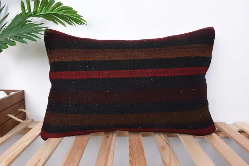 Almohada bordada de rayas marrones y rojas, almohada de lanzamiento hecha a mano de 16x24