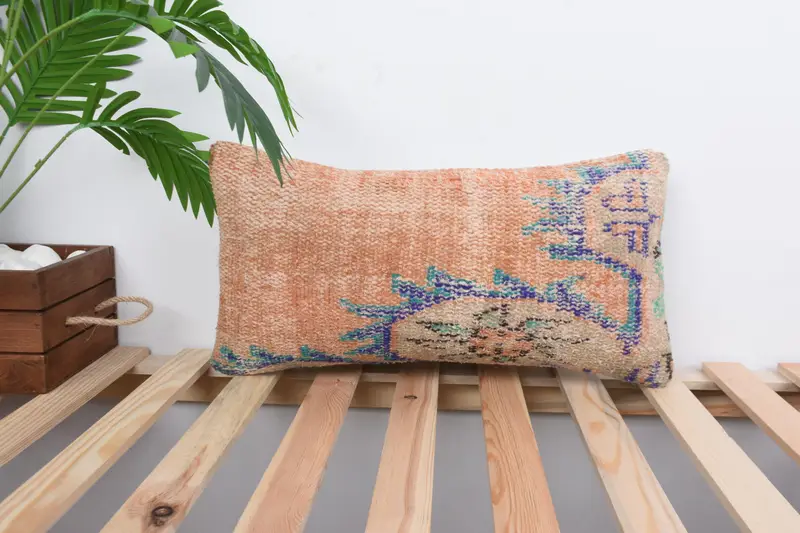 Almohada de lanzamiento bordada del suroeste naranja, cojín rectangular vintage