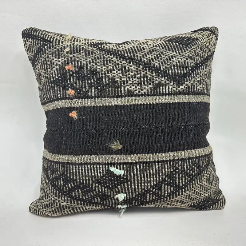 Almohada de tiro del suroeste gris y marrón, cojín vintage bordado