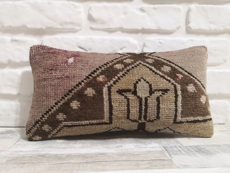 Almohada de lanzamiento de lana hecha a mano, almohada rectangular vintage geométrica