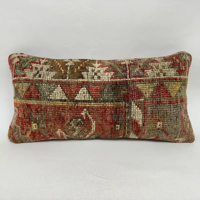 Almohada de lanzamiento bordada del suroeste rojo, cojín vintage hecho a mano