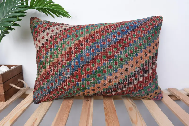 Almohada de lino geométrica roja y bronce, almohada de lanzamiento bordada de 16x24