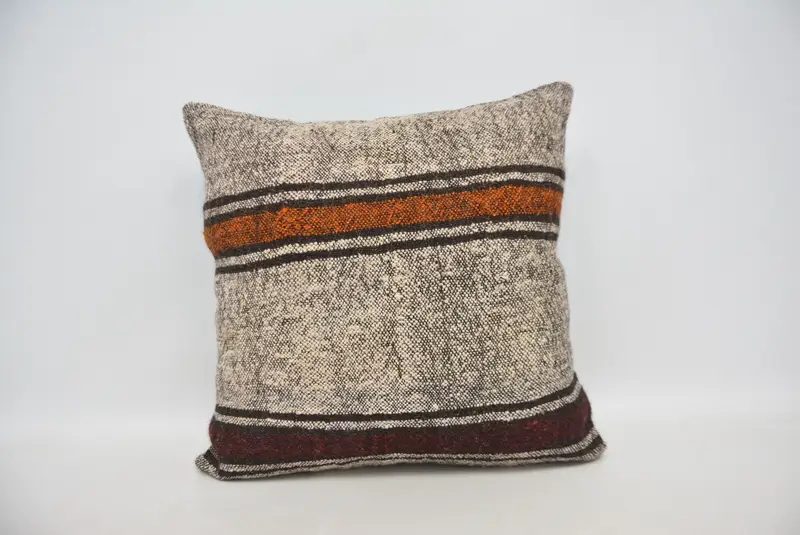 Almohada de tiro de rayas naranja y roja, almohada vintage bordada 24x24
