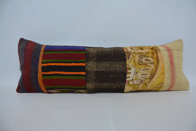 Cojín de cáñamo bordado, cojín a rayas rojas y bronce