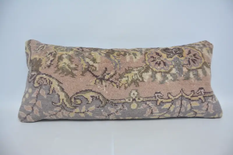 Almohada bordada de cáñamo y lana, almohada de tiro rosa de 16x36