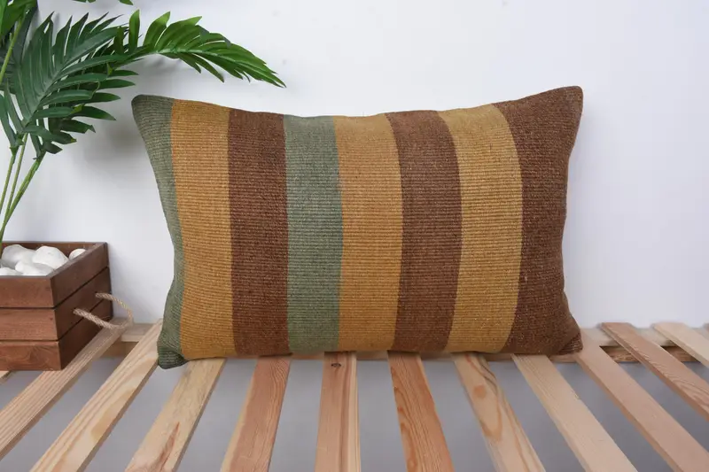Almohada de rayas marrones y verdes, almohada de lanzamiento bordada de 16x24