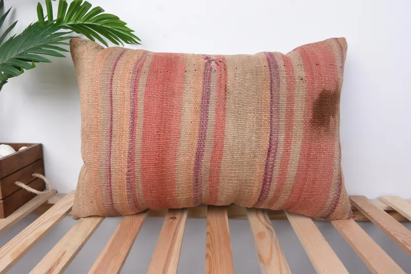 Almohada de tiro a rayas rojas y beige, cojín bordado hecho a mano