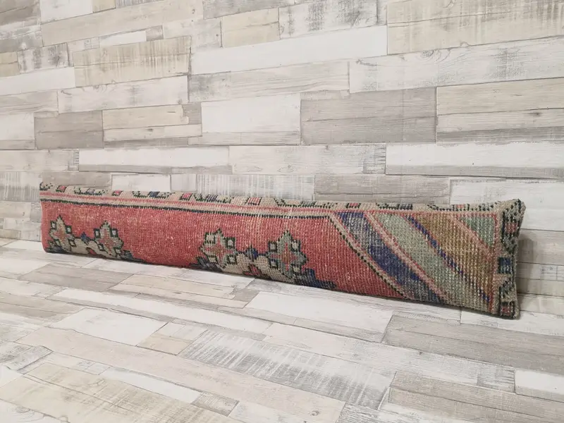 Almohada de lanzamiento de lana geométrica roja y bronce hecha a mano, 8x48 pulgadas