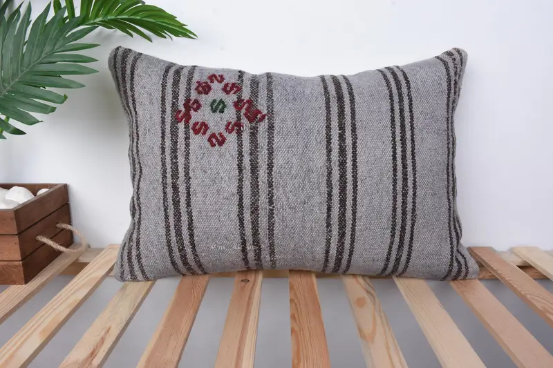 Almohada de tiro de rayas grises, cojín rectangular bordado