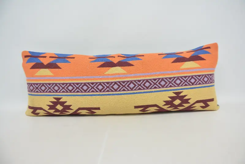 Almohada de lanzamiento Kilim rojo y bronce, cojín hecho a mano de 16x42
