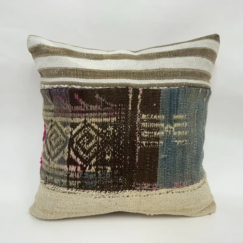 Almohada de lanzamiento de patchwork gris y beige, cojín vintage bordado