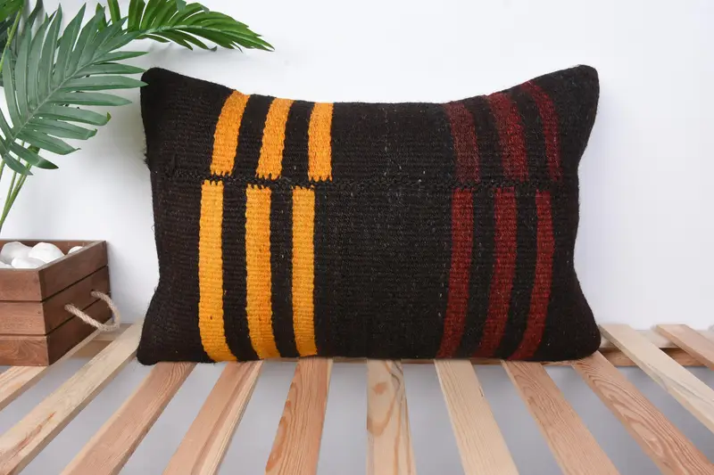 Almohada de tiro a rayas marrón y naranja, almohada vintage bordada