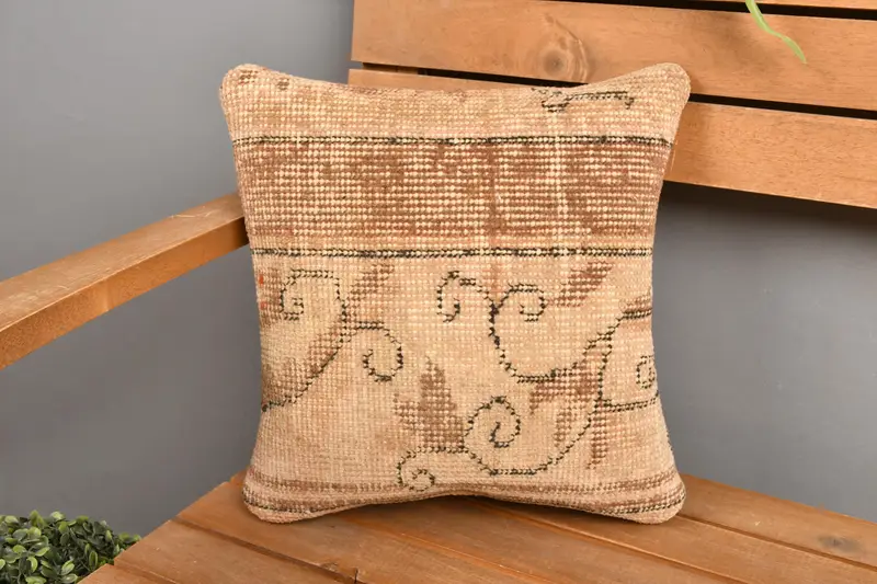 Almohada de tiro del suroeste hecha a mano, cojín de lino vintage beige y marrón