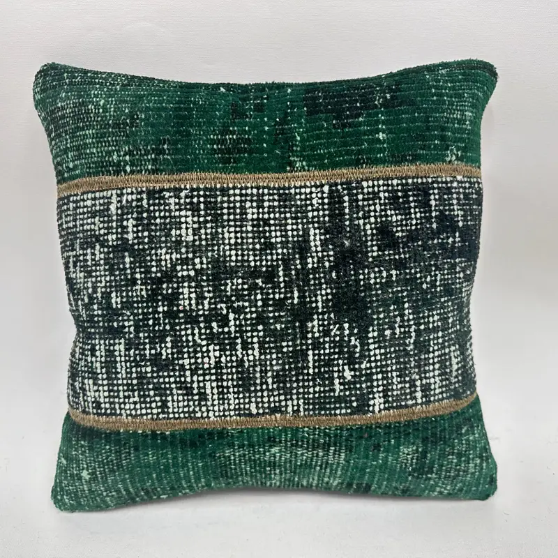 Almohada de tiro patchwork verde y negro, cojín bordado 16x16