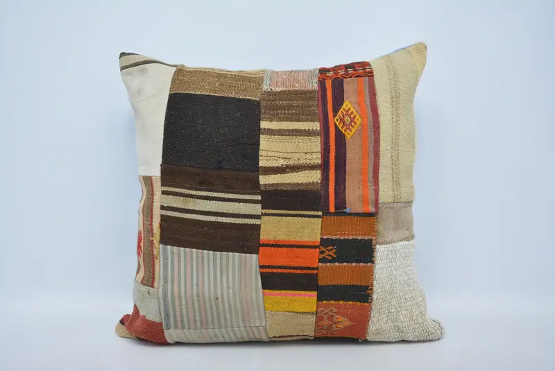 Almohada de tiro a rayas beige y marrón, almohada decorativa versátil de 32x32