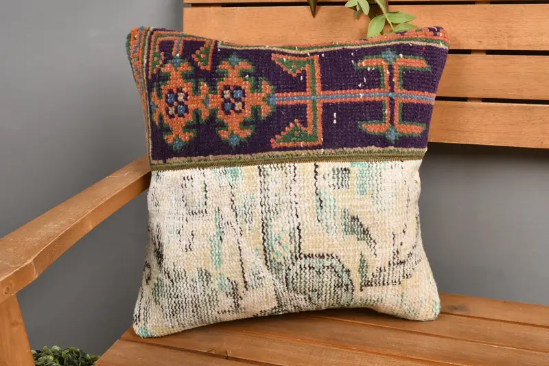Almohada de lanzamiento de patchwork naranja y bronce, cojín bordado vintage