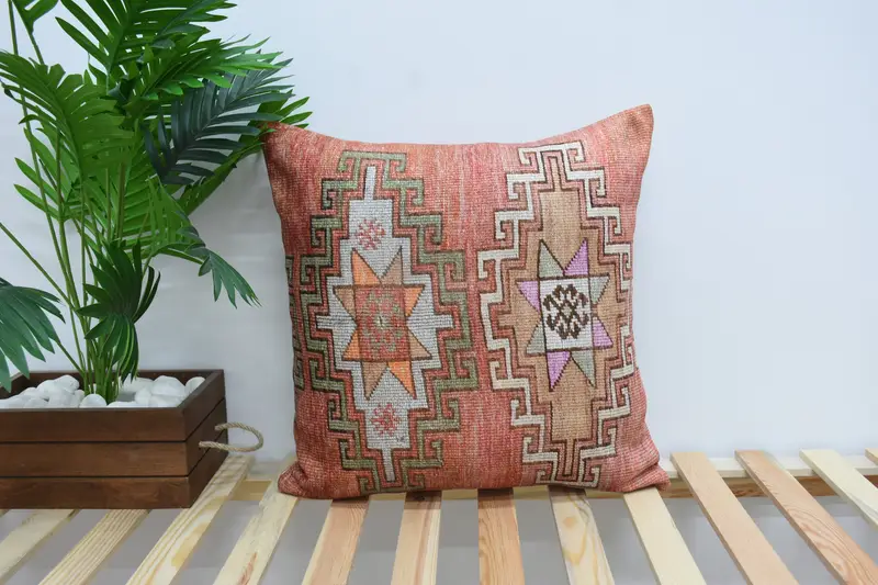 Almohada de lanzamiento beige y marrón bordada, almohada cuadrada vintage