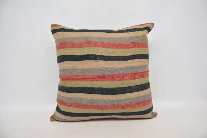 Almohada de tiro de rayas rojas, cojín de cáñamo bordado 28x28