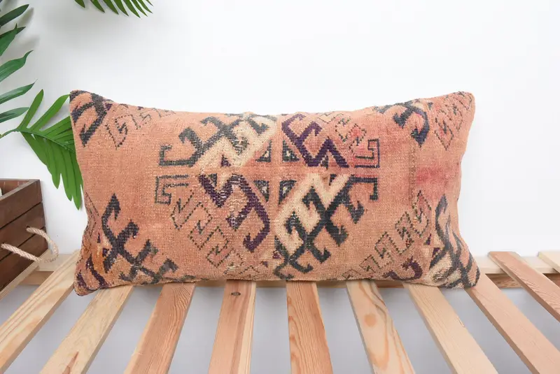 Almohada de tiro de lino rojo con bordado floral de bronce, almohada rectangular vintage