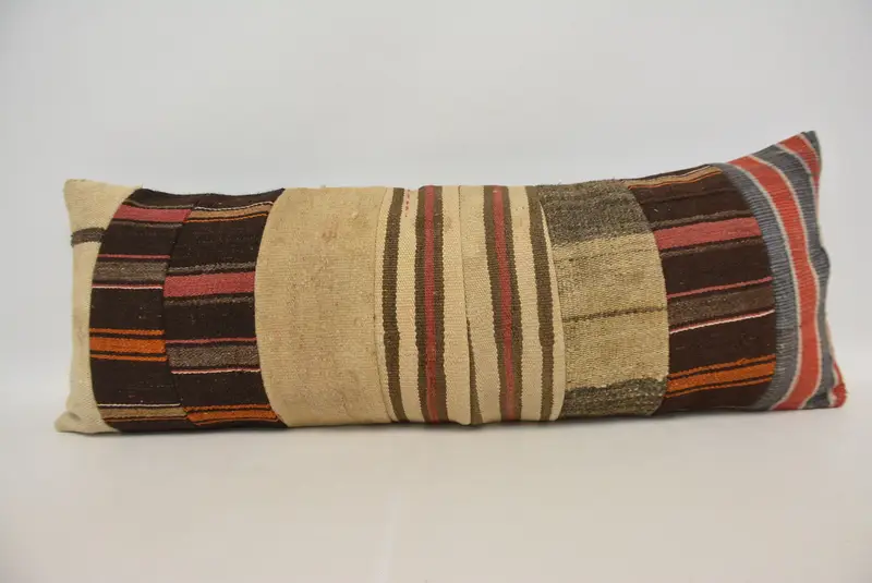 Almohada de tiro a rayas beige y marrón, cojín versátil de 16 x 42 pulgadas