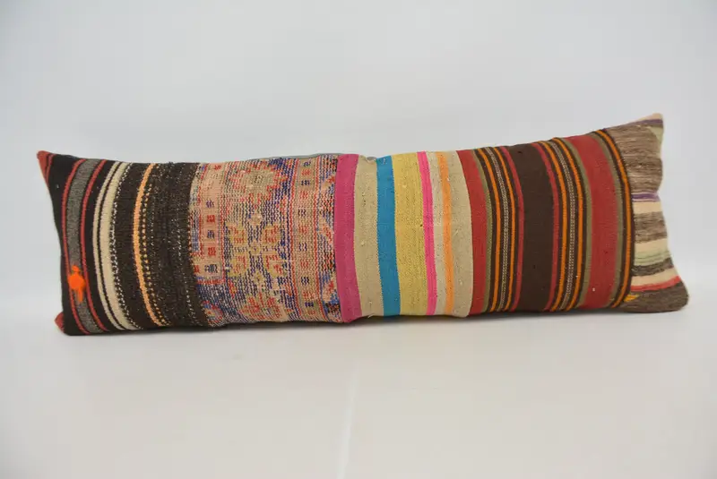 Almohada de tiro a rayas beige y marrón, cojín versátil hecho a mano