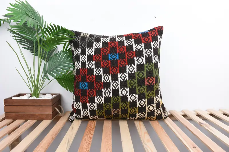 Funda de almohada Kilim roja, almohada de tiro bordada 24x24