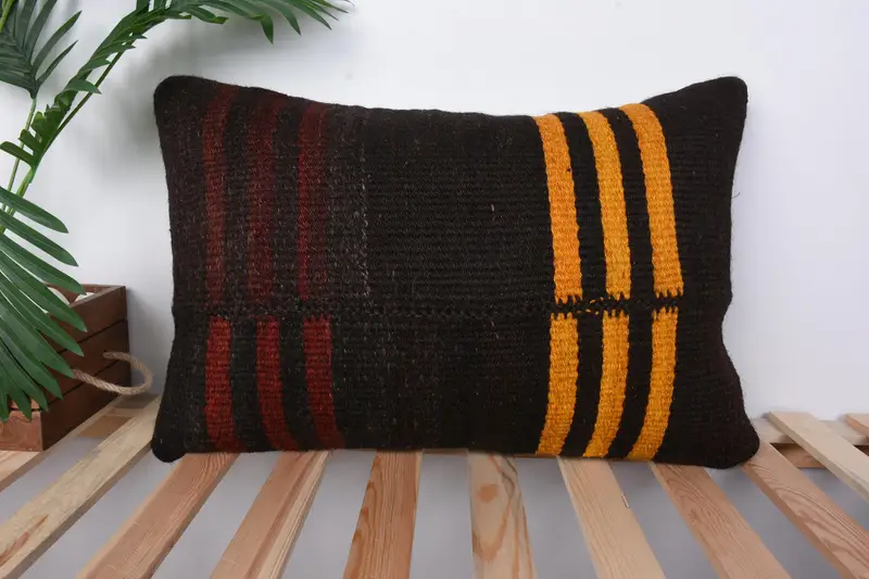 Almohada de rayas hecha a mano con almohada de lanzamiento marrón y naranja, versátil