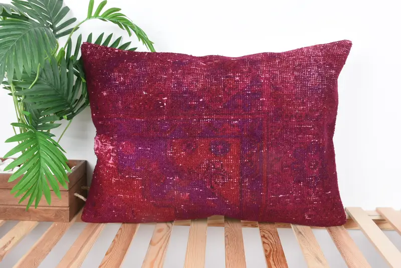 Almohada de tiro de rayas púrpura y rosa, cojín vintage bordado