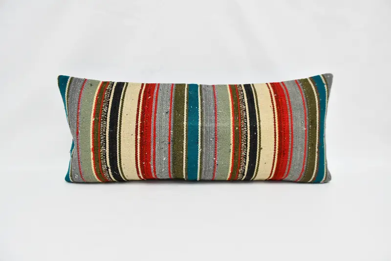 Almohada de tiro de rayas azules y rojas, cojín rectangular vintage