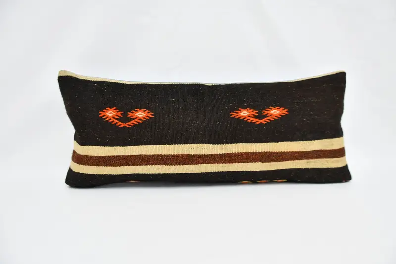 Almohada de lanzamiento rectangular marrón y naranja, cojín de cáñamo hecho a mano