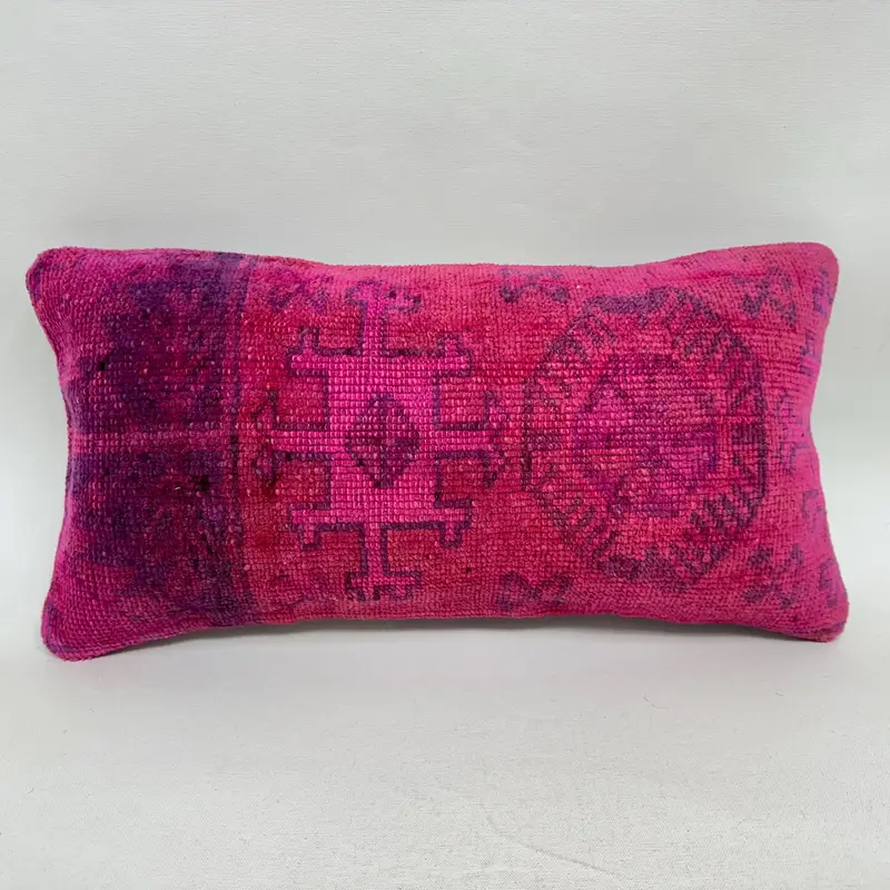 Almohada de lanzamiento rosa del suroeste con acentos púrpuras, almohada de lino hecha a mano