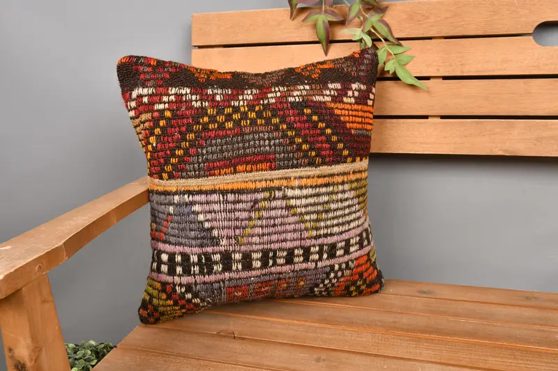 Almohada de lino rojo con diseño patchwork, cojín hecho a mano