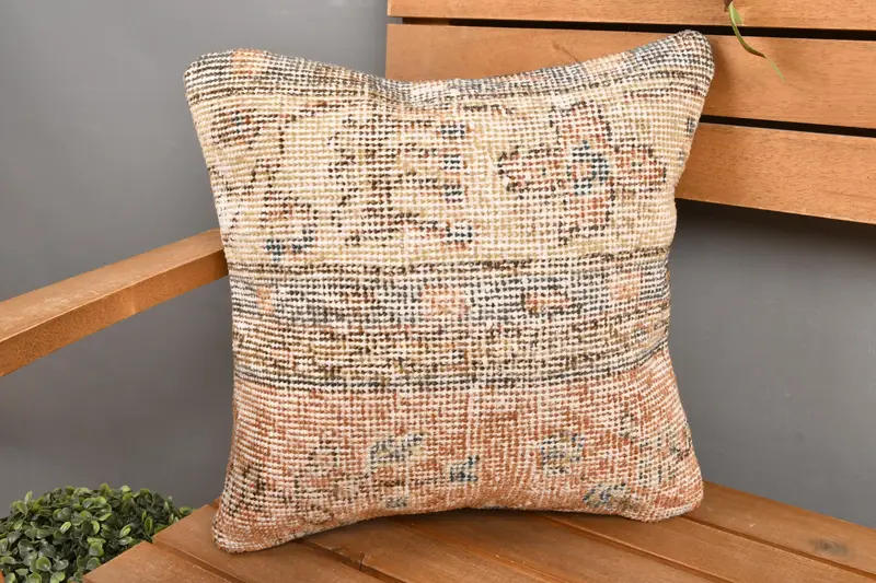 Almohada de tiro bordada beige y marrón, cojín floral vintage