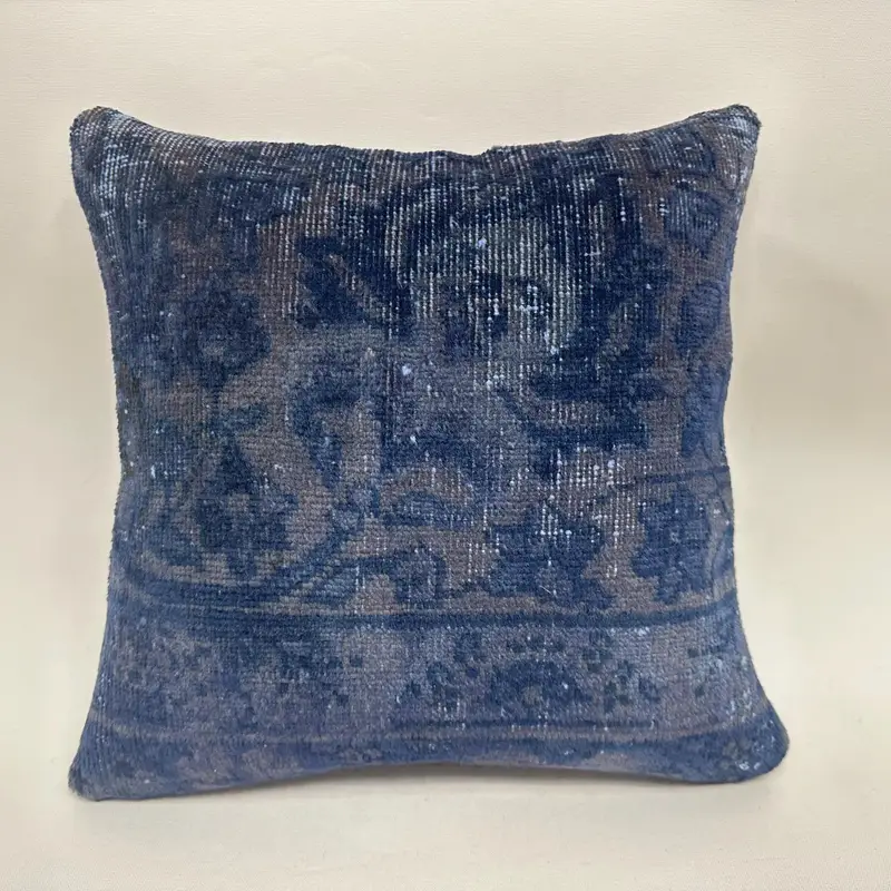 Almohada de lanzamiento azul del suroeste, cojín bordado vintage de 16x16