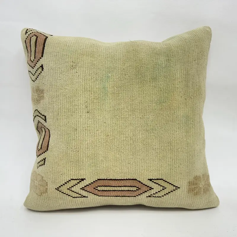 Almohada de lanzamiento floral verde y marrón hecha a mano, cojín bordado vintage