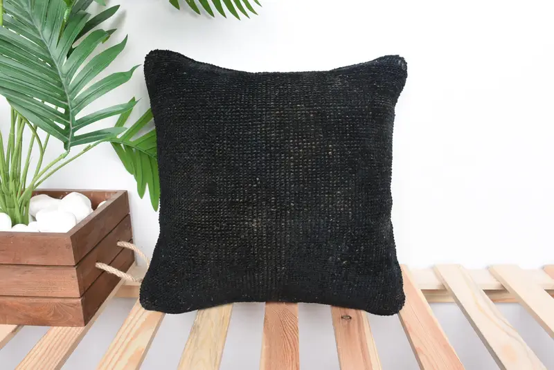 Almohada de lanzamiento bordada del suroeste hecha a mano, cojín de lino negro vintage
