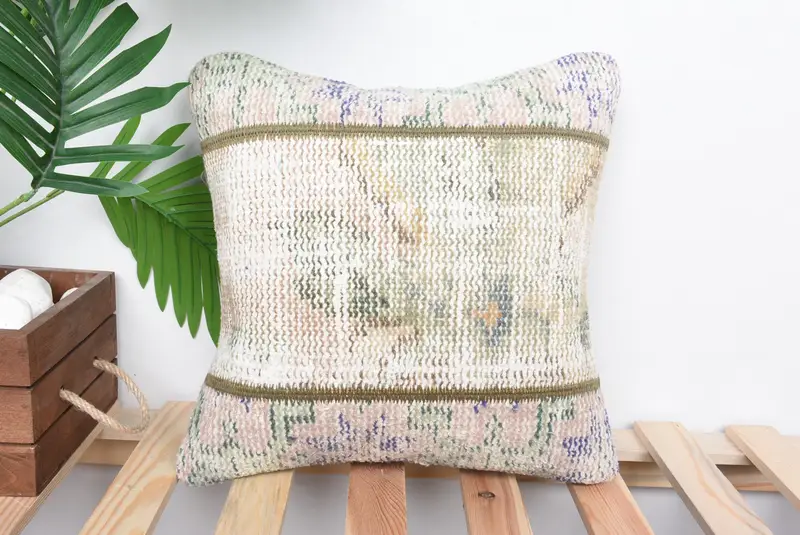 Almohada de lanzamiento de patchwork beige y marrón, cojín bordado 14x14