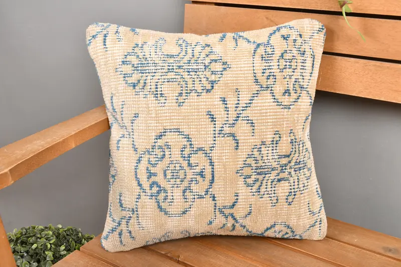 Almohada de lanzamiento bordada beige y verde, cojín de lino versátil de 14x14