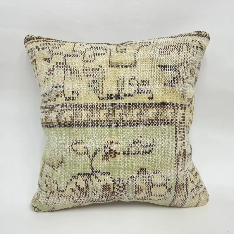 Almohada de tiro floral verde y marrón hecha a mano, almohada de lino 20x20