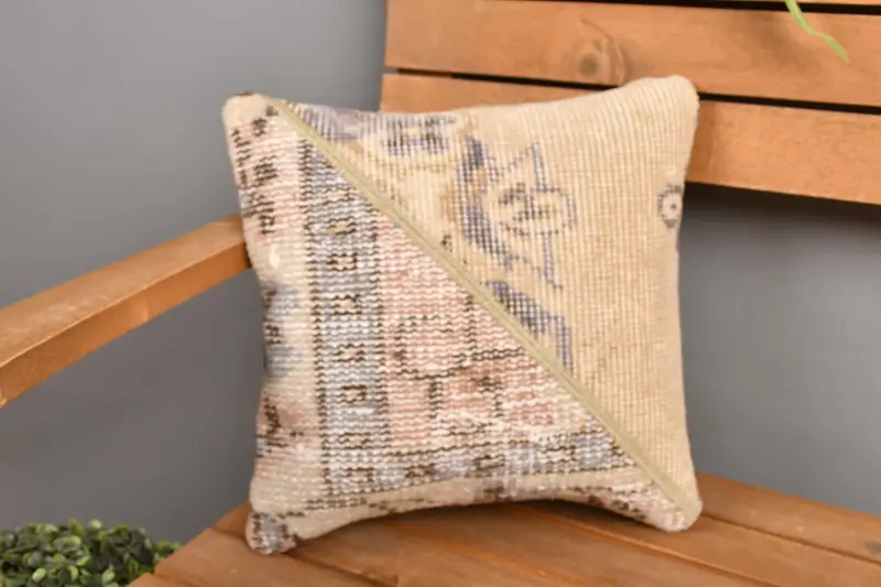Almohada de patchwork beige y naranja bordada, almohada de lanzamiento hecha a mano